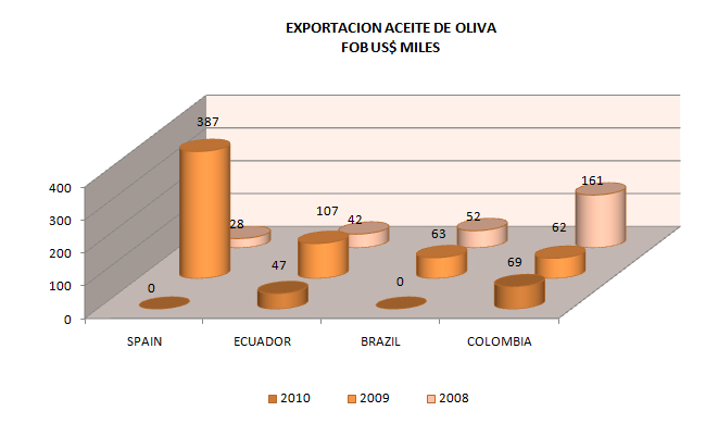 La exportación de Aceite de Oliva alcanza los US 117 mil al primer trimestre del 2010.