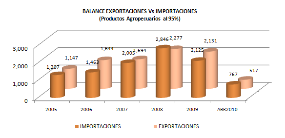 Las importaciones Agropecuarias del Perú en el Período Enero Abril 2010 alcanzan los US 767 millones, cifra 24% mayor que en el año 2009.